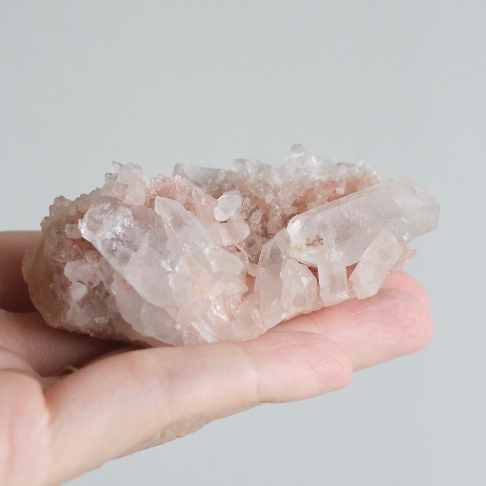 ダメージがある結晶もありますが、ふんわりピンクの素敵なクラスターです。