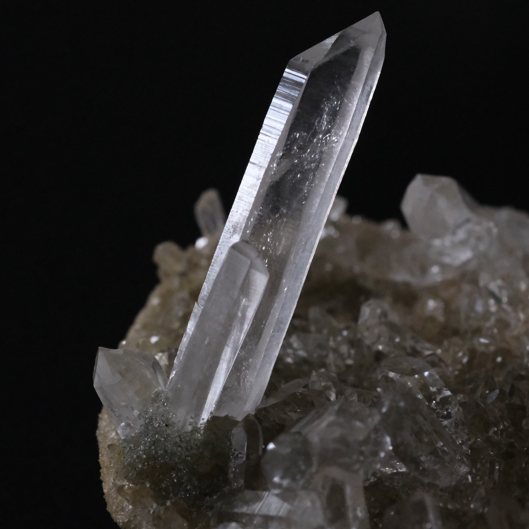 こちらのクラスターはほとんど無色透明の結晶ですが、