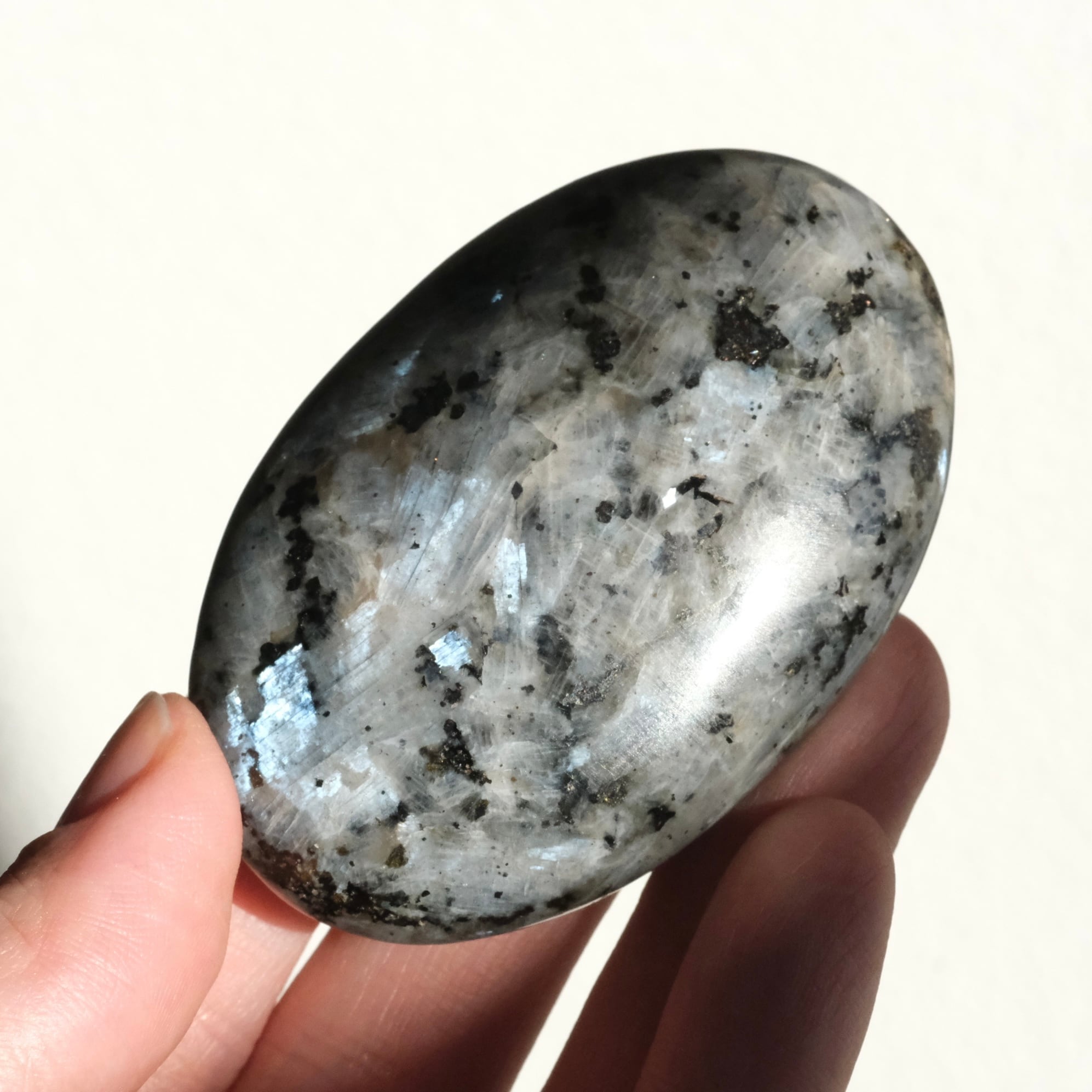 ラブラドライトに似た青や白のシラー(光の反射)が美しいラルビカイト。