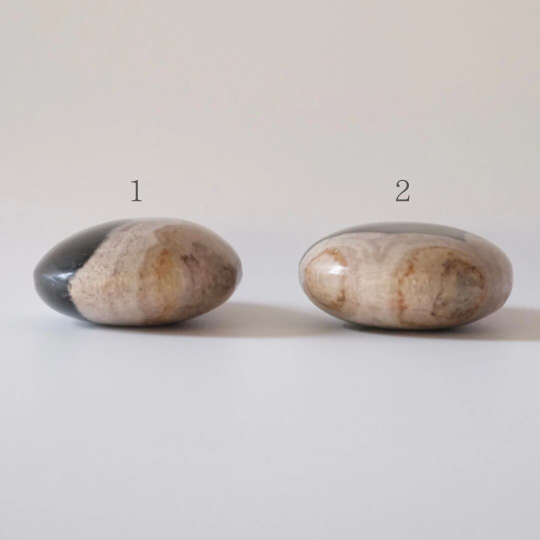 模様などの見た目ではわずかに木っぽさも残しつつ、持った感じや質感は石というなんとも不思議な存在です。