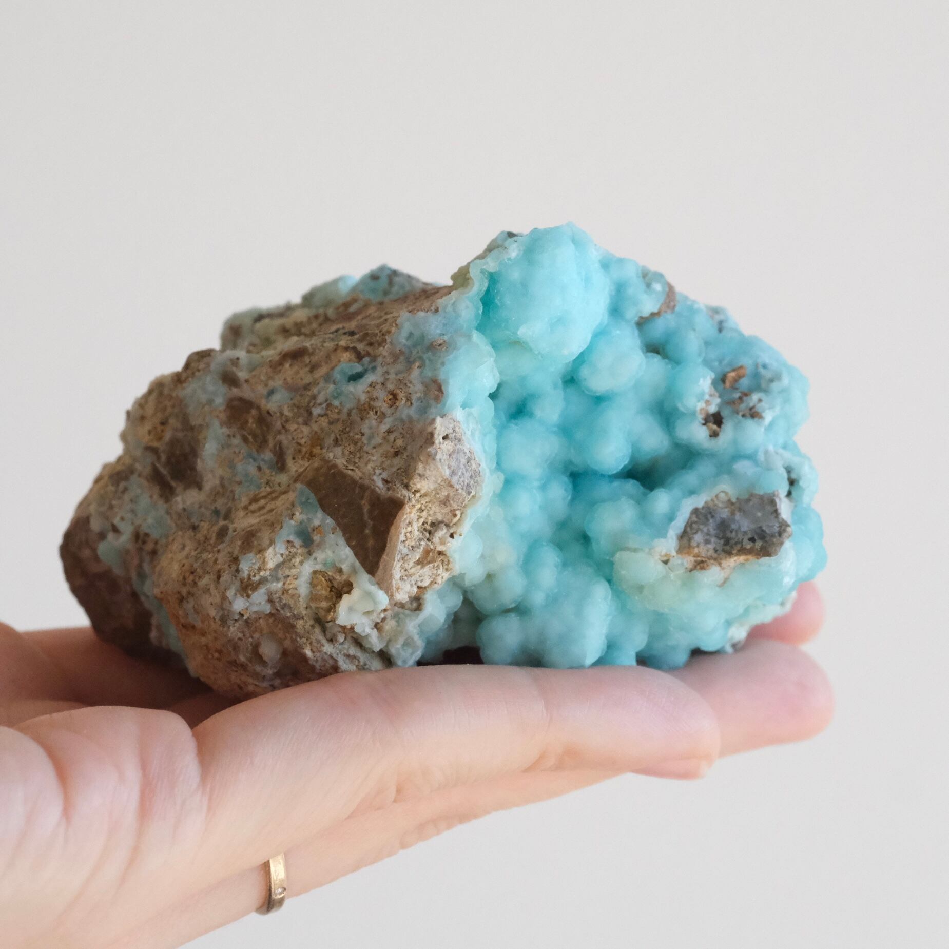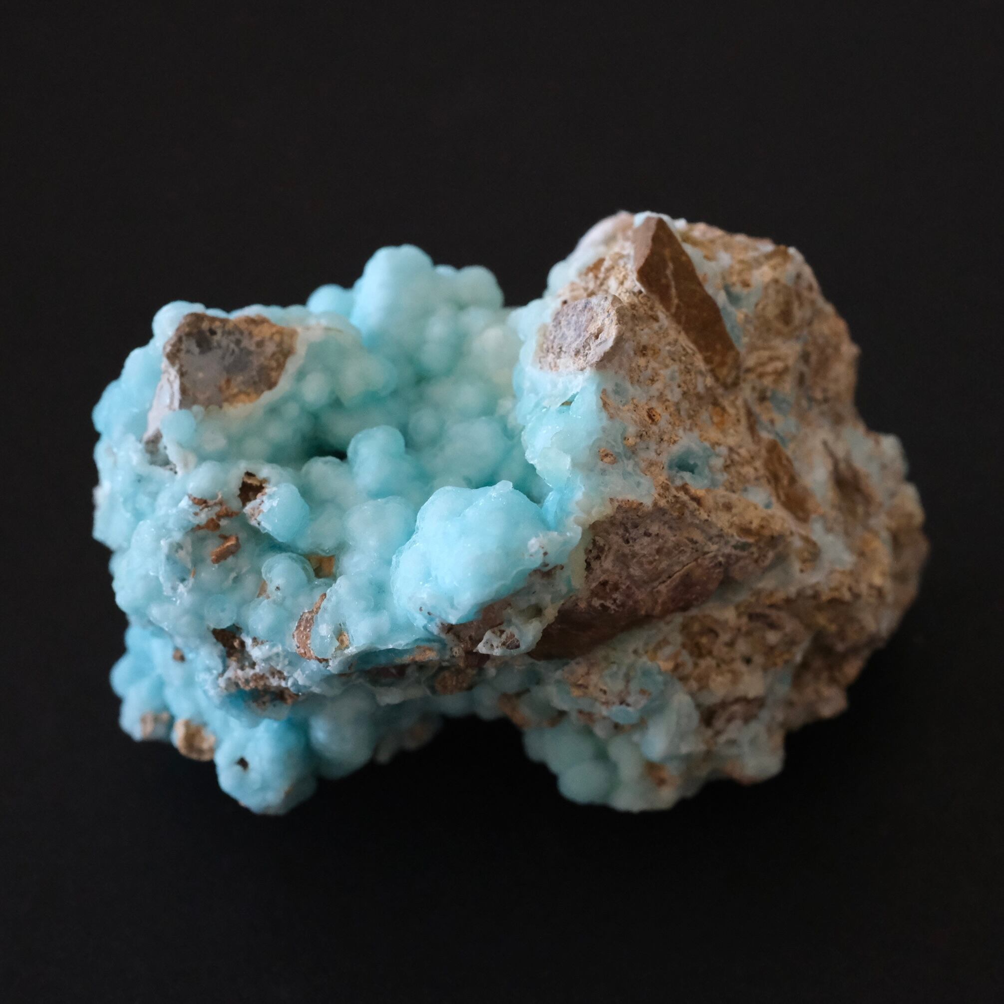 美しい水色のすりガラスのような表面をしたヘミモルファイト。