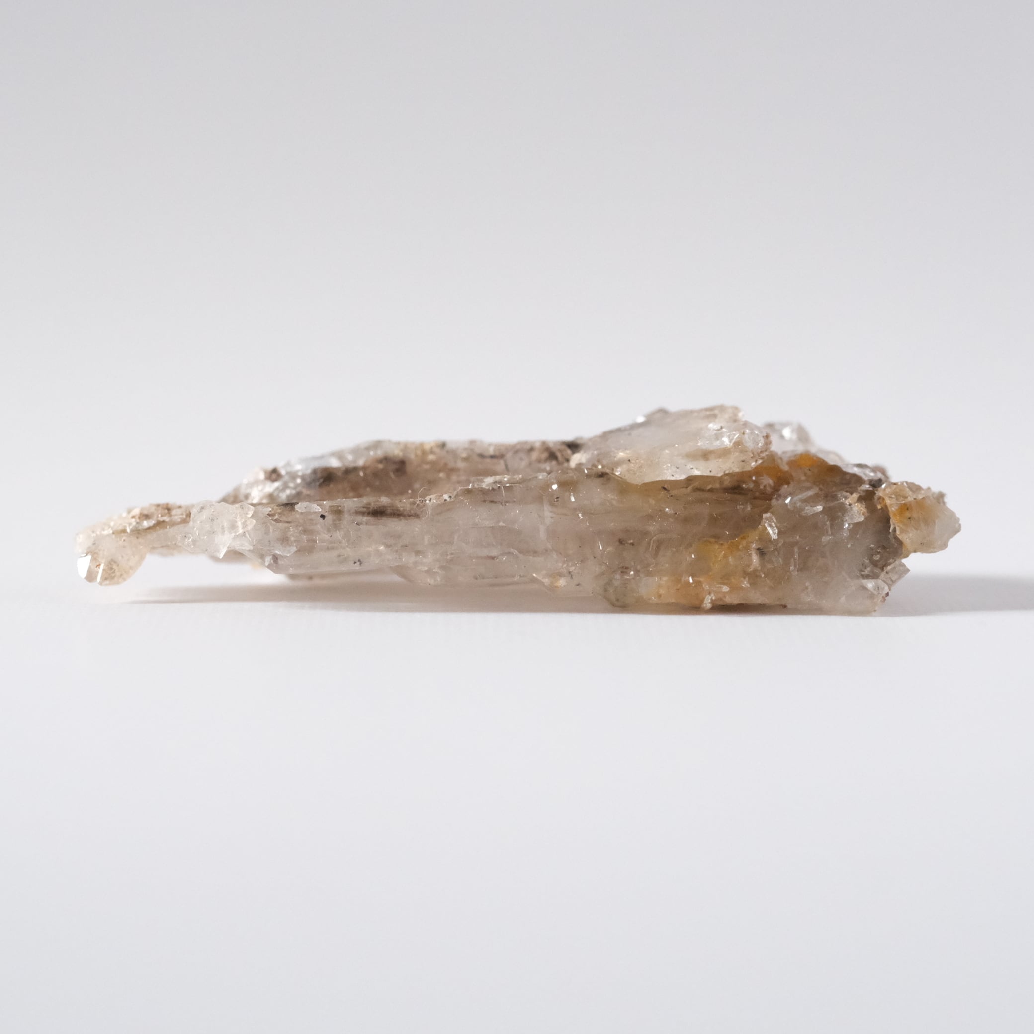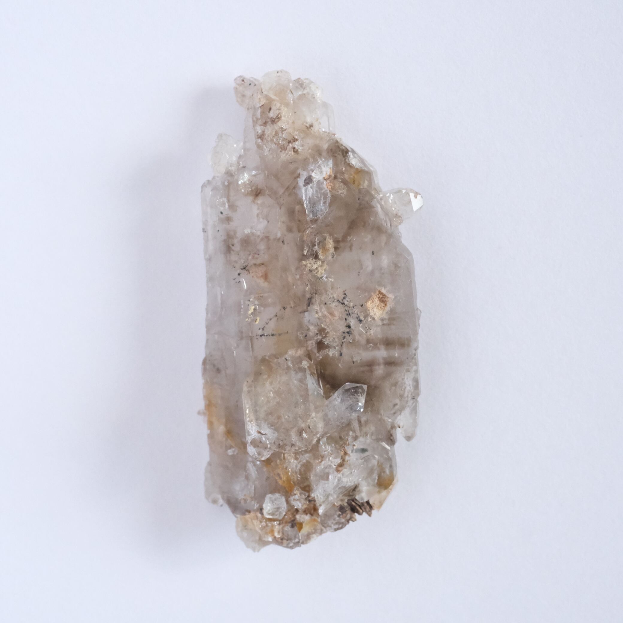 水晶内部に自然放射線の影響が加わることで、この落ち着いた茶~グレーの色合いが生まれます。