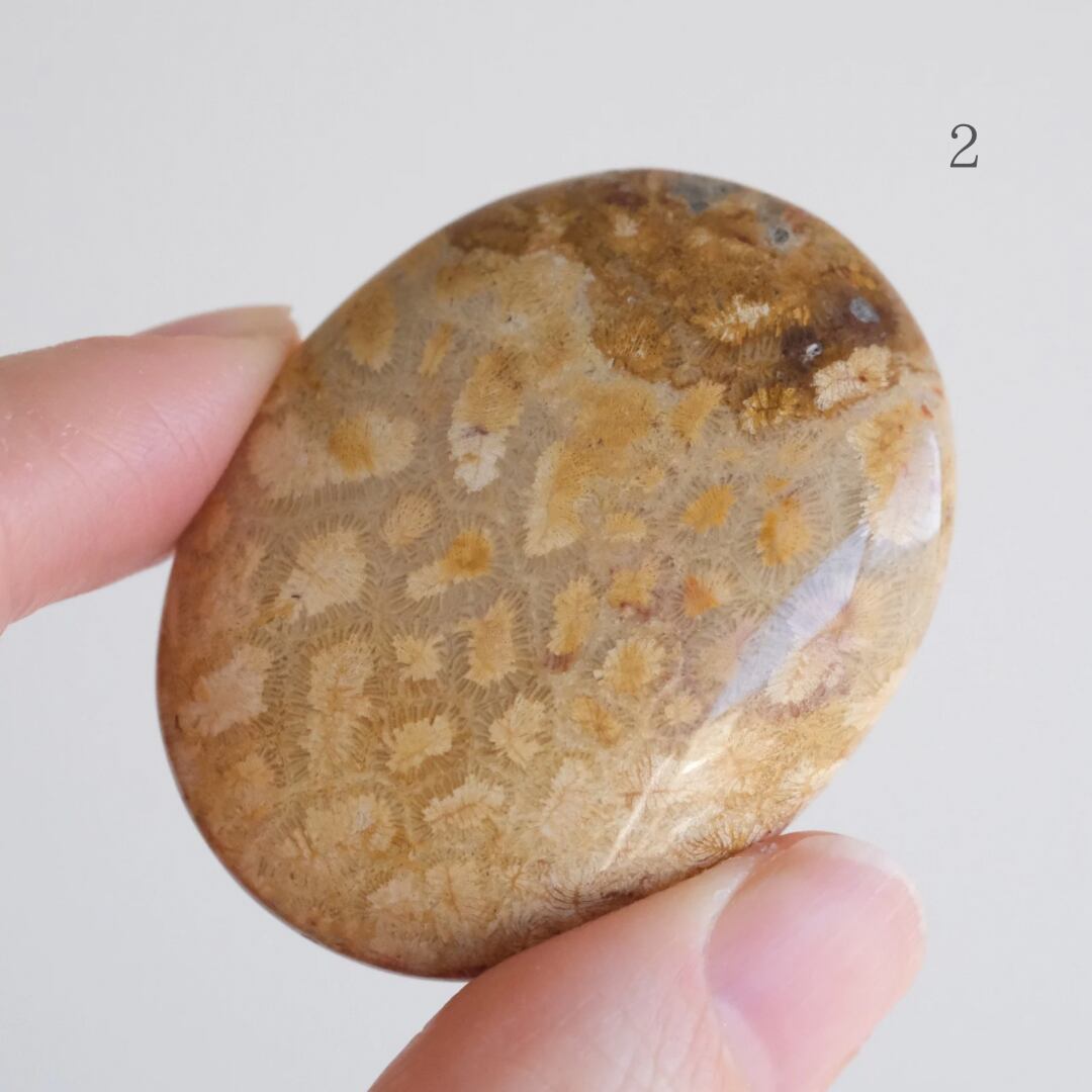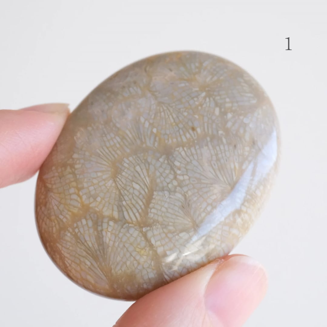 フォッシルコーラルの握り石 〇 化石珊瑚
