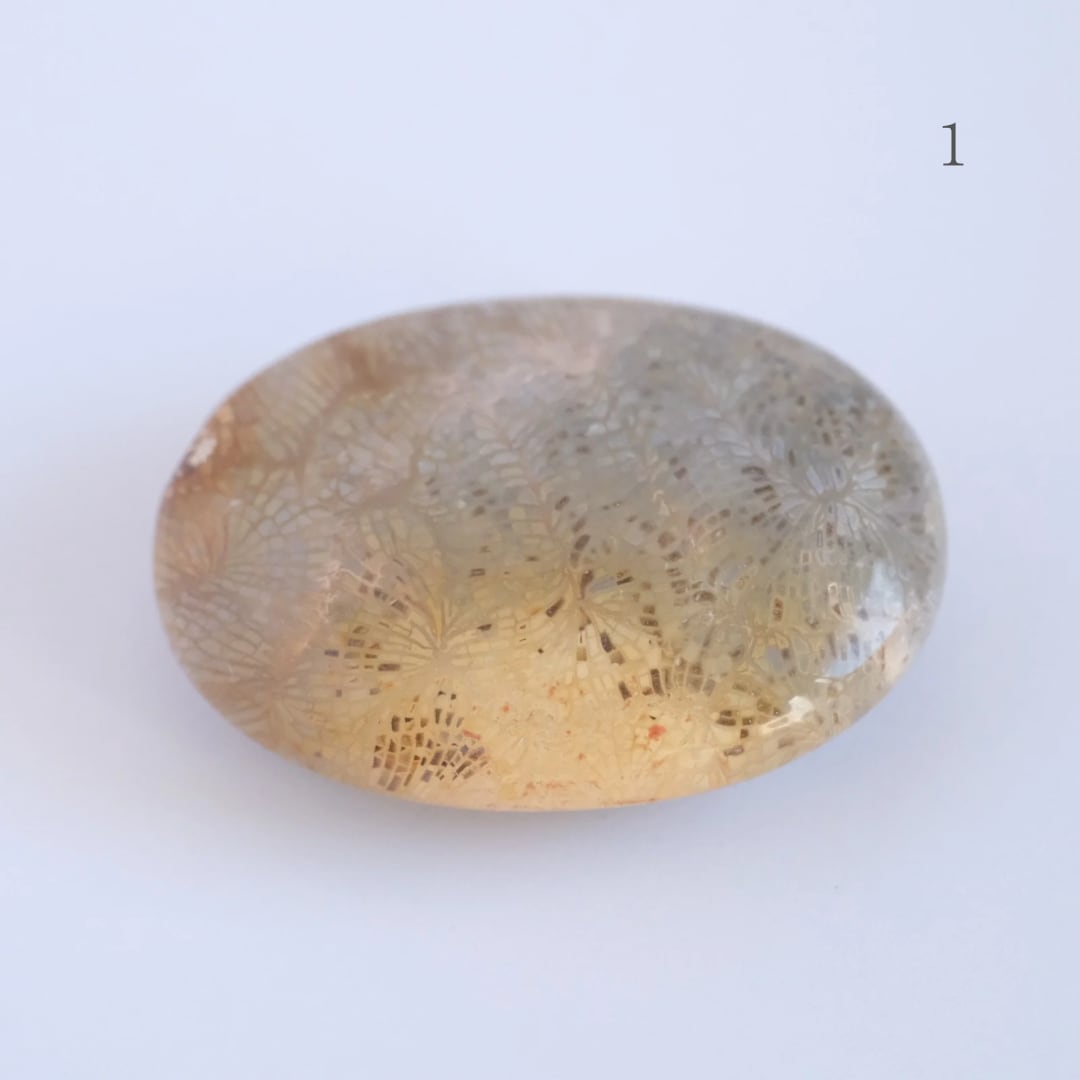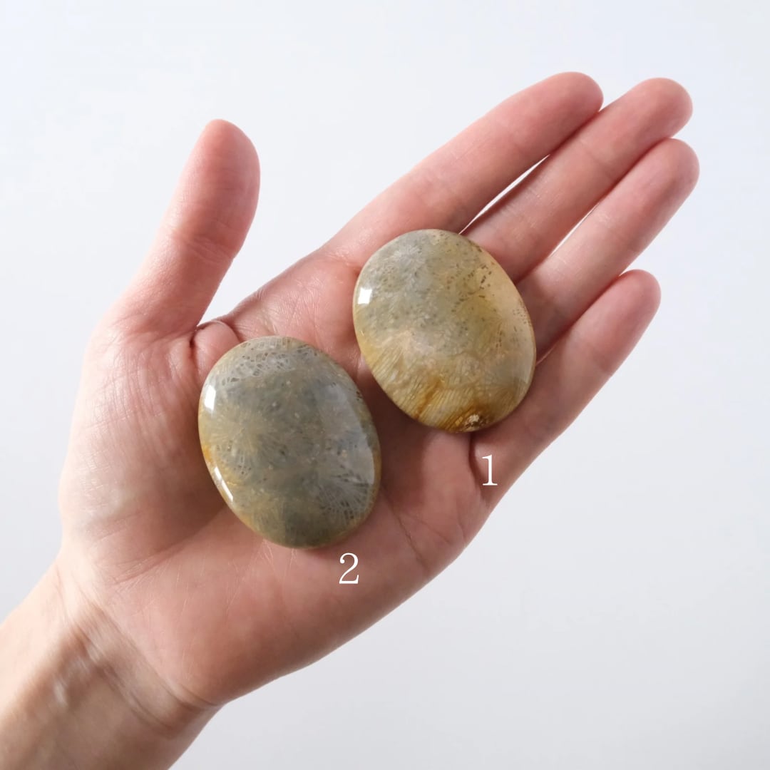 フォッシルコーラルの握り石 〇 化石珊瑚