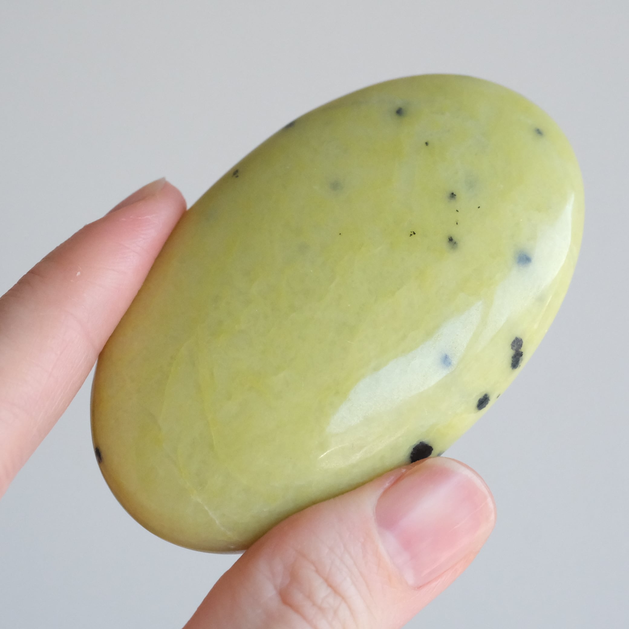 ライムグリーンサーペンティンの握り石 〇 蛇紋石(じゃもんせき)