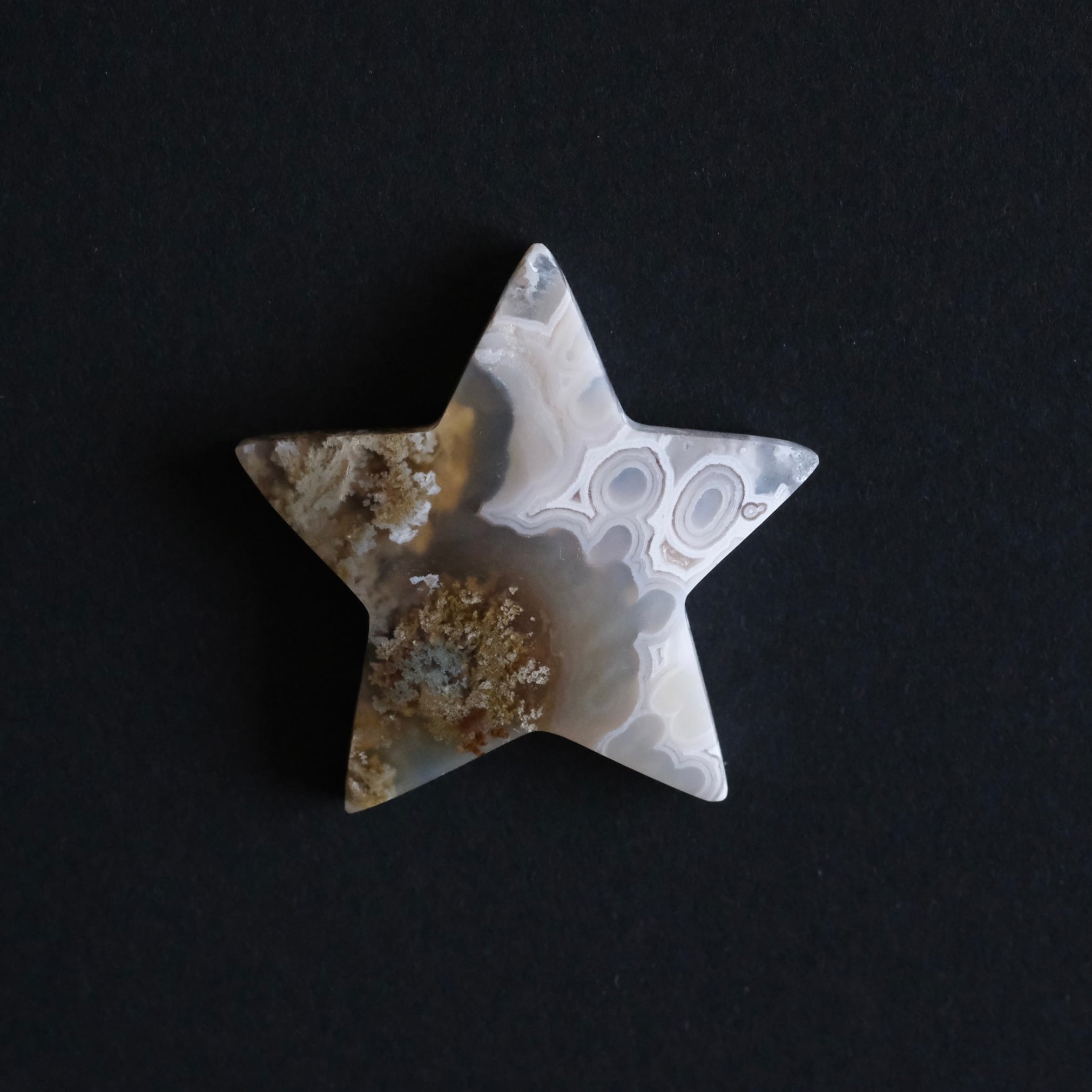 お星さまには、オーシャンジャスパーなどにみられる丸いグルグル模様も。