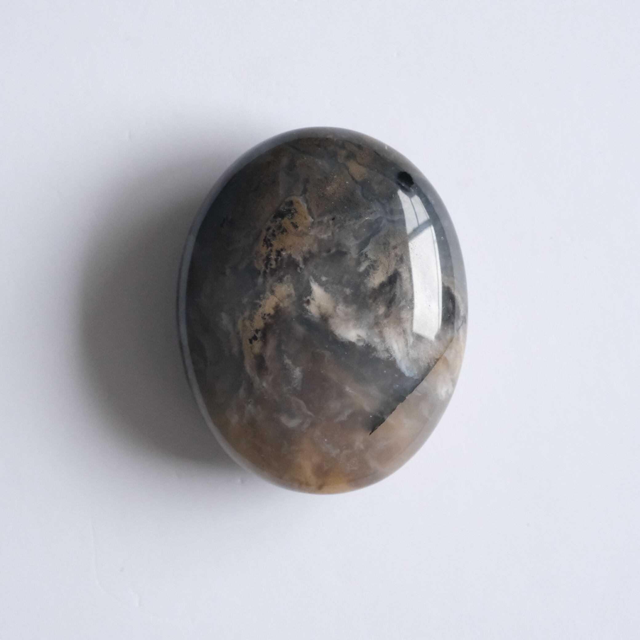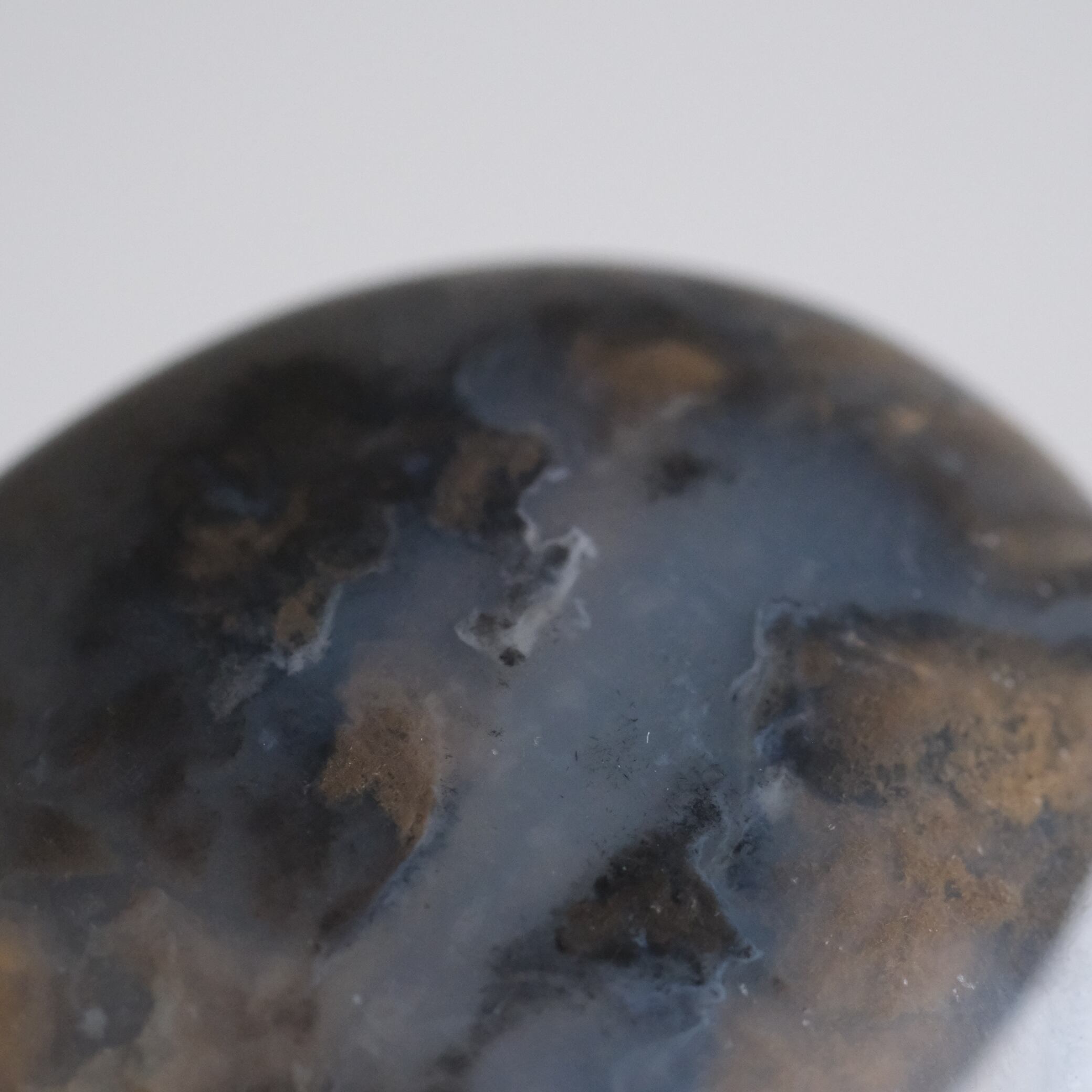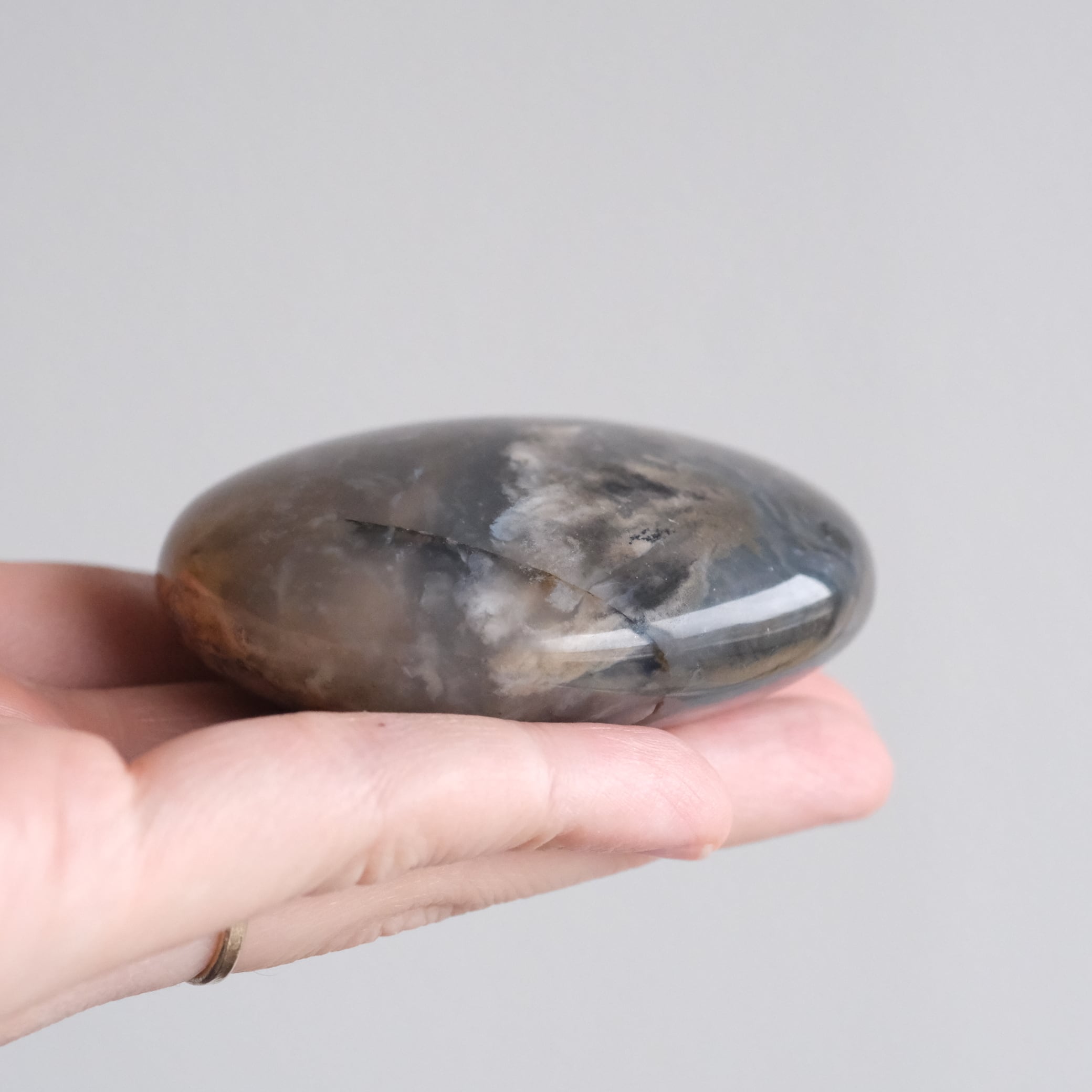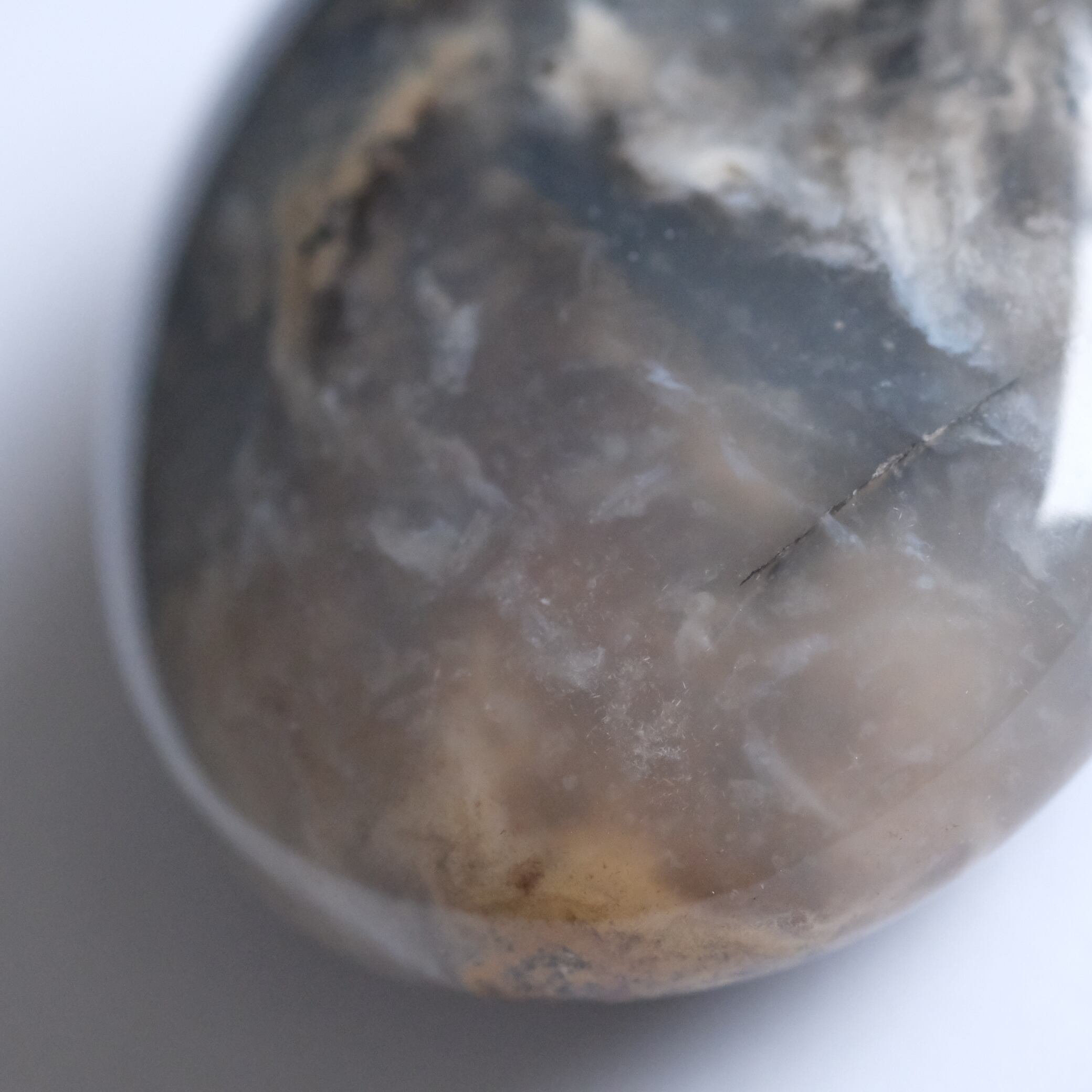 こちらは、カルセドニーに鉄分やマンガンなどの内包物がやわらかく広がる模様になったお石さんです。