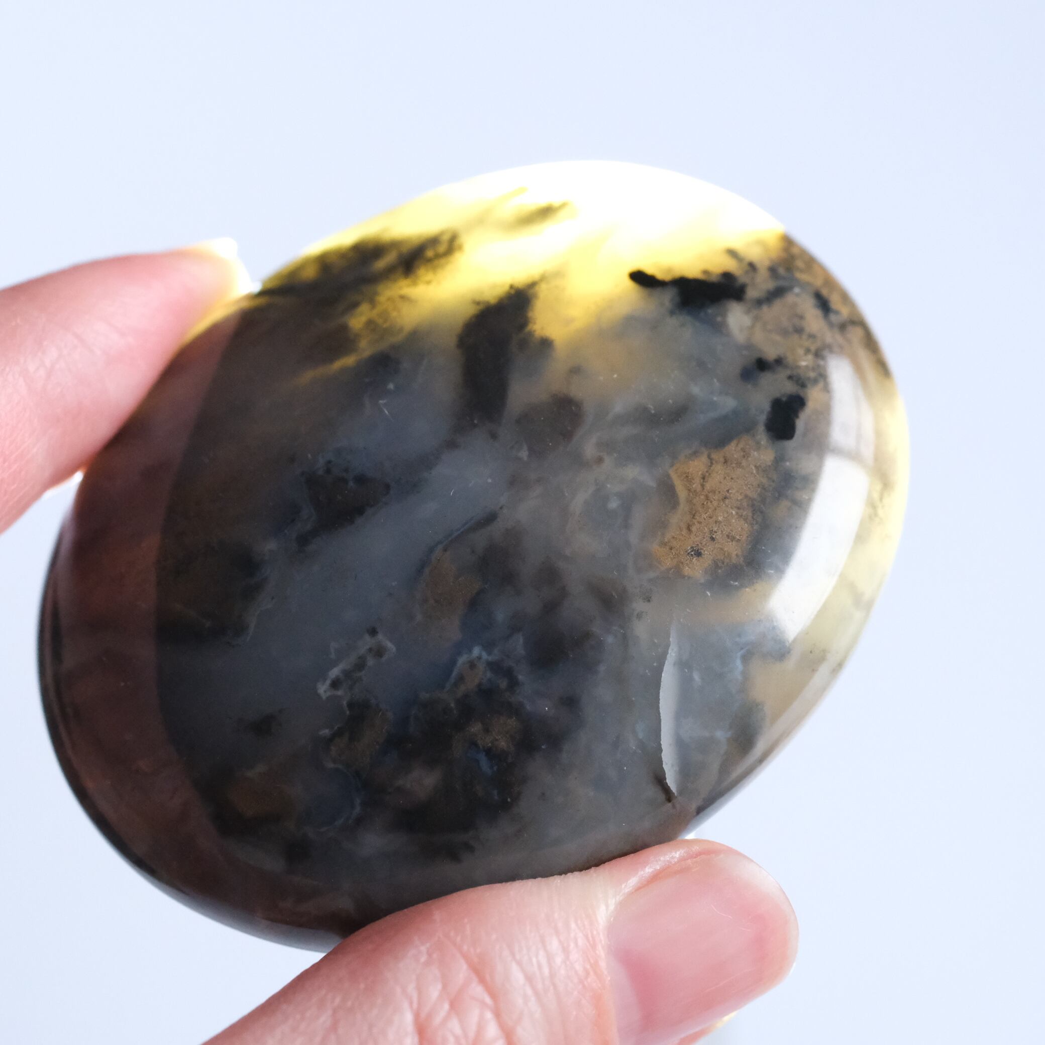タイガーデンドリックと呼ばれているカルセドニーの握り石 〇 玉髄(ぎょくずい)