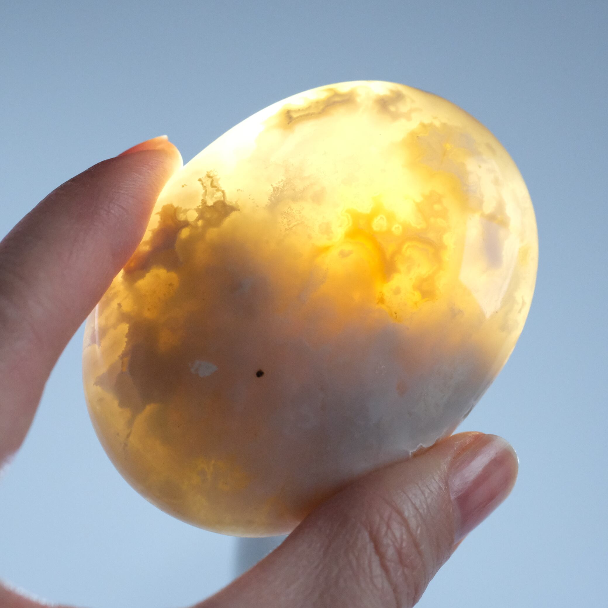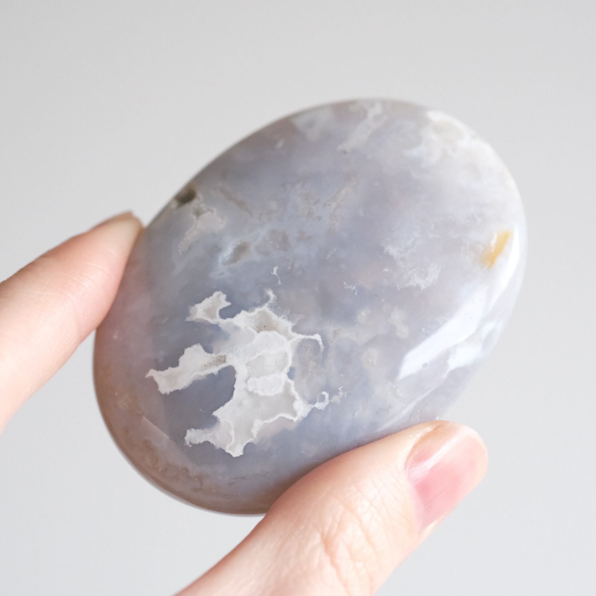 グレープルームアゲートの握り石 〇 羽毛瑪瑙(めのう)