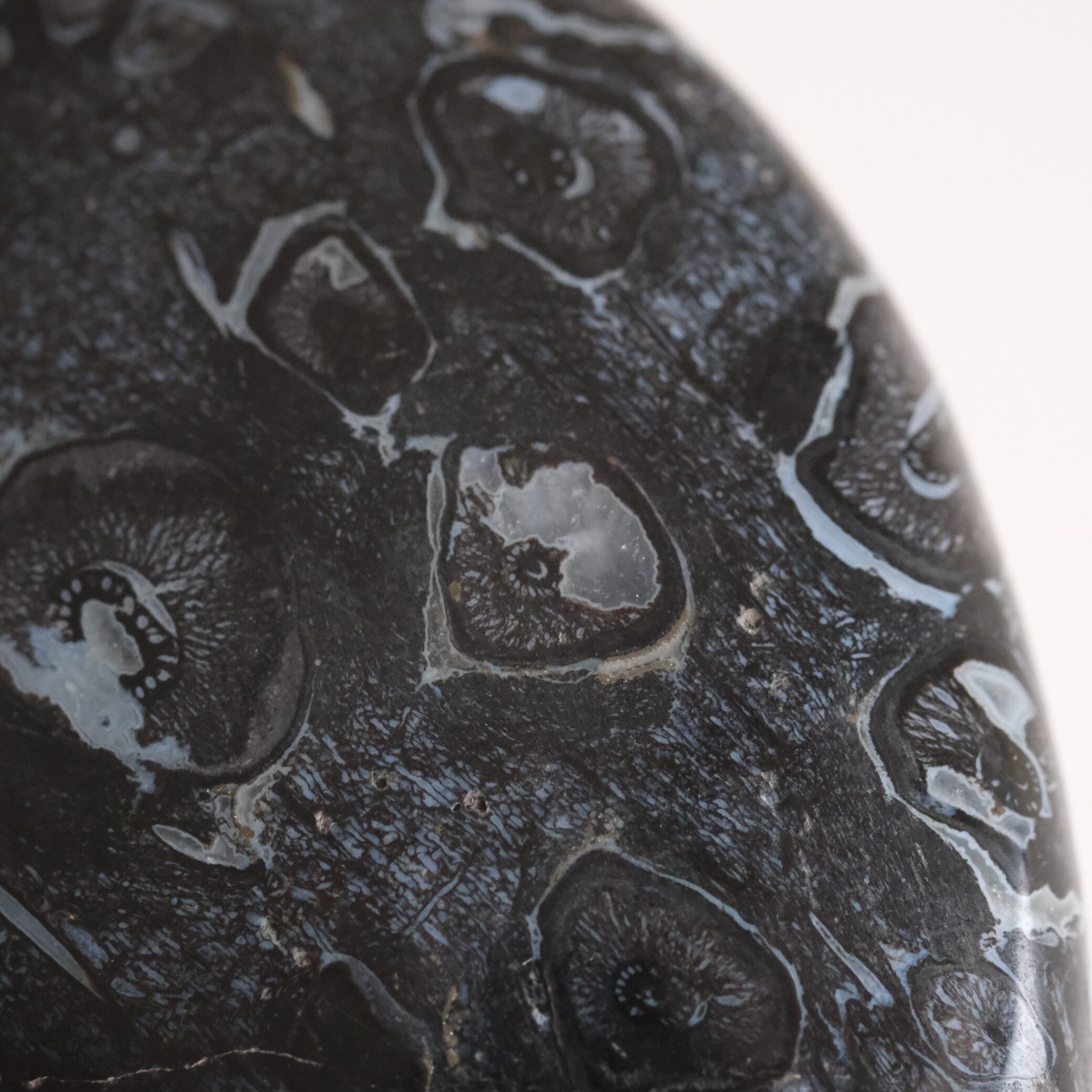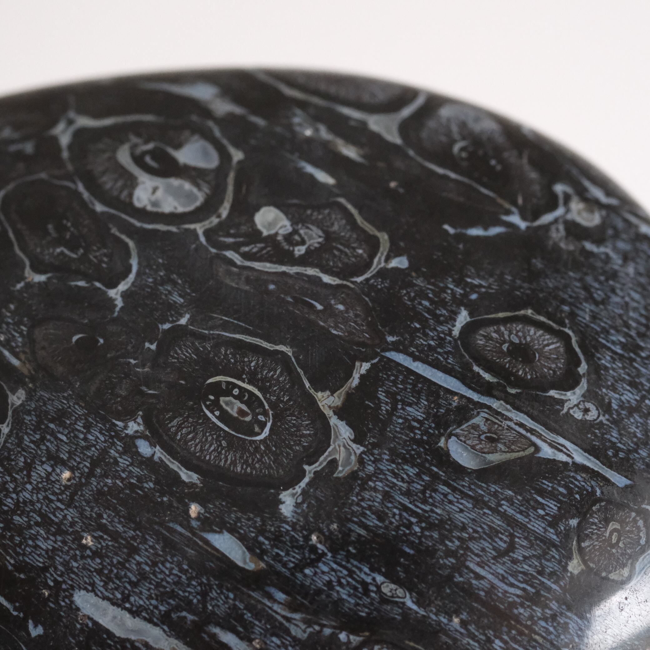 この模様は、ヤシの根の断面構造がそのまま化石となって現れたもの。
