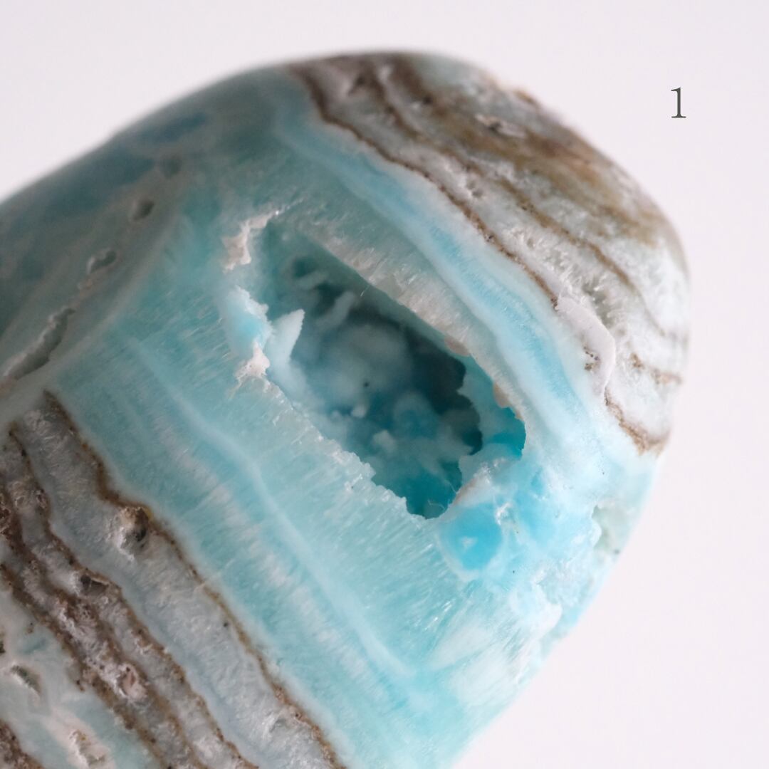 海と陸が一緒になったようなブルーアラゴナイトの握り石たちです。